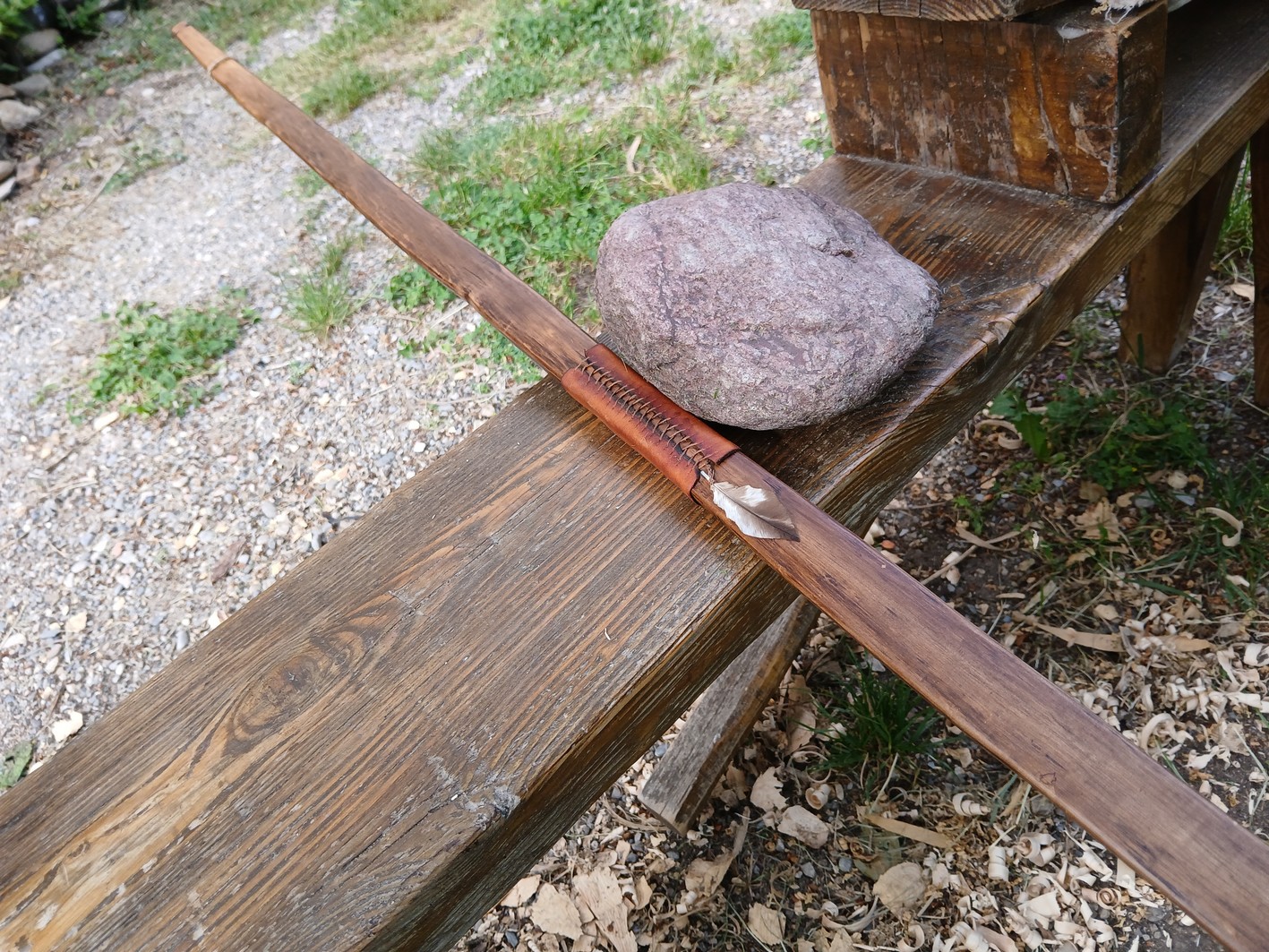 Flat Bow s’inspirant de la préhistoire Européenne (Meare Heath). Un Arc très stable, poignée épaisse et rigide, précis, pourvue de nombreuses couches de protections contre l’humidité. Il est en frêne, son profil traditionnel avec la poignée en retrait (set back in the handle) lui confère un bon reflex lors du tir. Une pièce unique. Cet arc est vendue